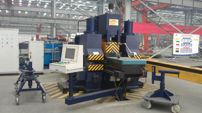 該設備是國際上最新機型,是船廠進行肋骨加工的智能化設備。主要用于船體肋骨不同線型冷加工彎制,可加工球扁鋼、角鋼、T型材。通過對型材進行自動三維彎曲,可獲得平整的內彎、外彎、S彎形狀的工件,也可進行型材的校直和校平。工作過程是在全自動狀態(tài)下進行,并具備半自動和手動狀態(tài)下完成工作。
