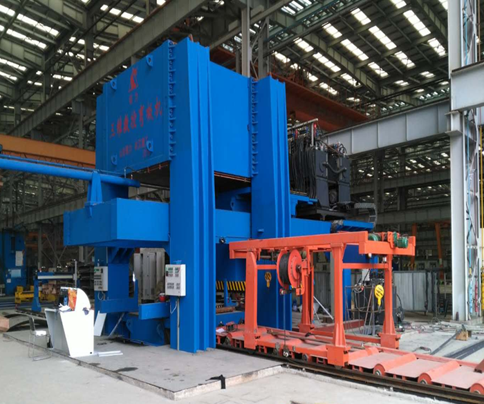 三維數(shù)控彎板機(jī)是專(zhuān)門(mén)用于船體多曲面外板冷加工的自動(dòng)化數(shù)控設(shè)備,適合壓制帆型、馬鞍形等復(fù)雜雙曲度船體外板。設(shè)備配置了專(zhuān)門(mén)的數(shù)控系統(tǒng),與常用的造船設(shè)計(jì)軟件具有曲板數(shù)據(jù)轉(zhuǎn)換通訊接口,能根據(jù)讀入的船體外板的形狀、曲率變化、板材長(zhǎng)度、厚度和材料的強(qiáng)度等數(shù)據(jù)自動(dòng)調(diào)整下模的形狀,進(jìn)行彎壓處理。在彎壓過(guò)程中,數(shù)控系統(tǒng)能自己記錄彎板過(guò)程中的回彈量,為后續(xù)壓制板材提供數(shù)據(jù),加工效率高、精度高,可實(shí)現(xiàn)長(zhǎng)時(shí)期連續(xù)自動(dòng)化作業(yè)。主要性能技術(shù)參數(shù)1、加工鋼板的最大屈服強(qiáng)度σs=750 MPa 2、可彎制板材厚度6mm~30mm,板寬0.6m~2m,板長(zhǎng)不限制(托輥送料)3、單張板的最大重量8噸 4、板料輸送速度≥3m/min 5、最大上升高度(距地坪)≥1000mm